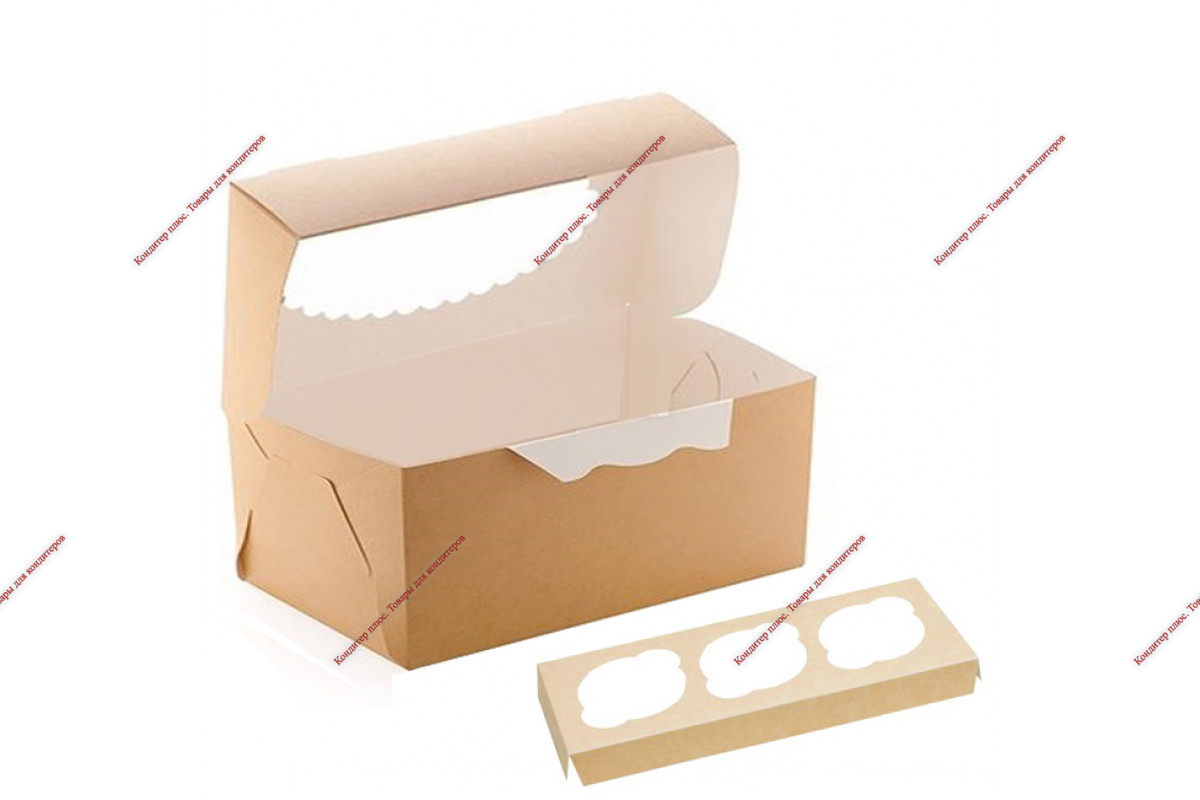 Коробка для капкейков, 25x10x10мм, на 3 капкейка, с окном