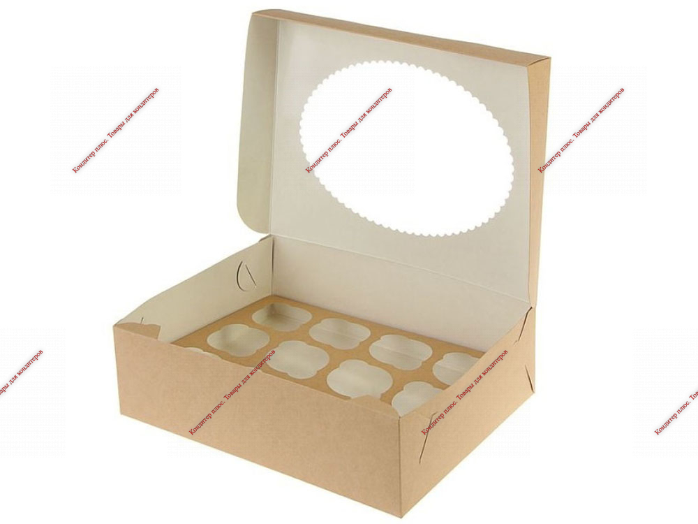 Коробка для капкейков, 35x25x10 см, на 12 капкейков, с окном - Кондитер плюс. Товары для кондитеров